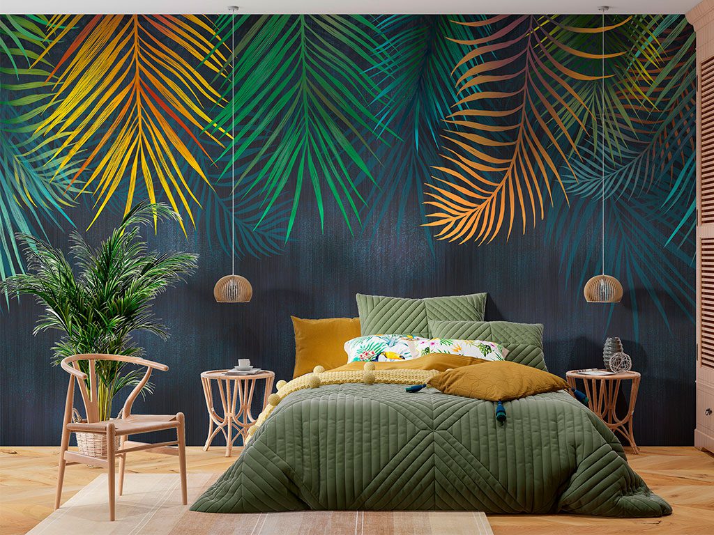 "Alive Jungle Fantasy" presenta un diseño vibrante y colorido de hojas tropicales en tonos verdes, amarillos y naranjas sobre un fondo oscuro. Este mural es ideal para salas de estar, dormitorios, oficinas, restaurantes y hoteles, añadiendo un toque exótico, energético y moderno a cualquier espacio.