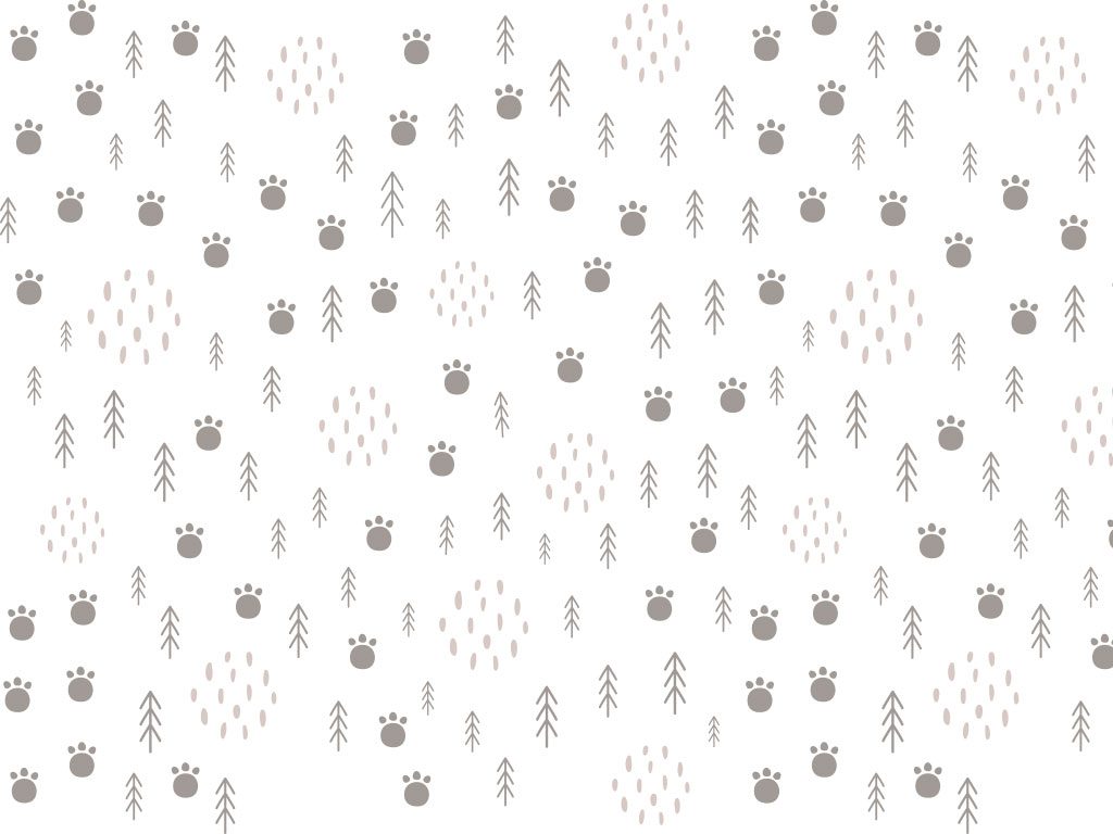 "Bear Print" presenta un patrón de huellas de oso y árboles estilizados en tonos grises y beige sobre un fondo blanco. Este diseño sencillo y natural es ideal para habitaciones de niños, salas de juego, jardines infantiles y consultorios pediátricos. Aporta un ambiente acogedor y aventurero, perfecto para cualquier espacio que busque una decoración que inspire exploración y conexión con la naturaleza.