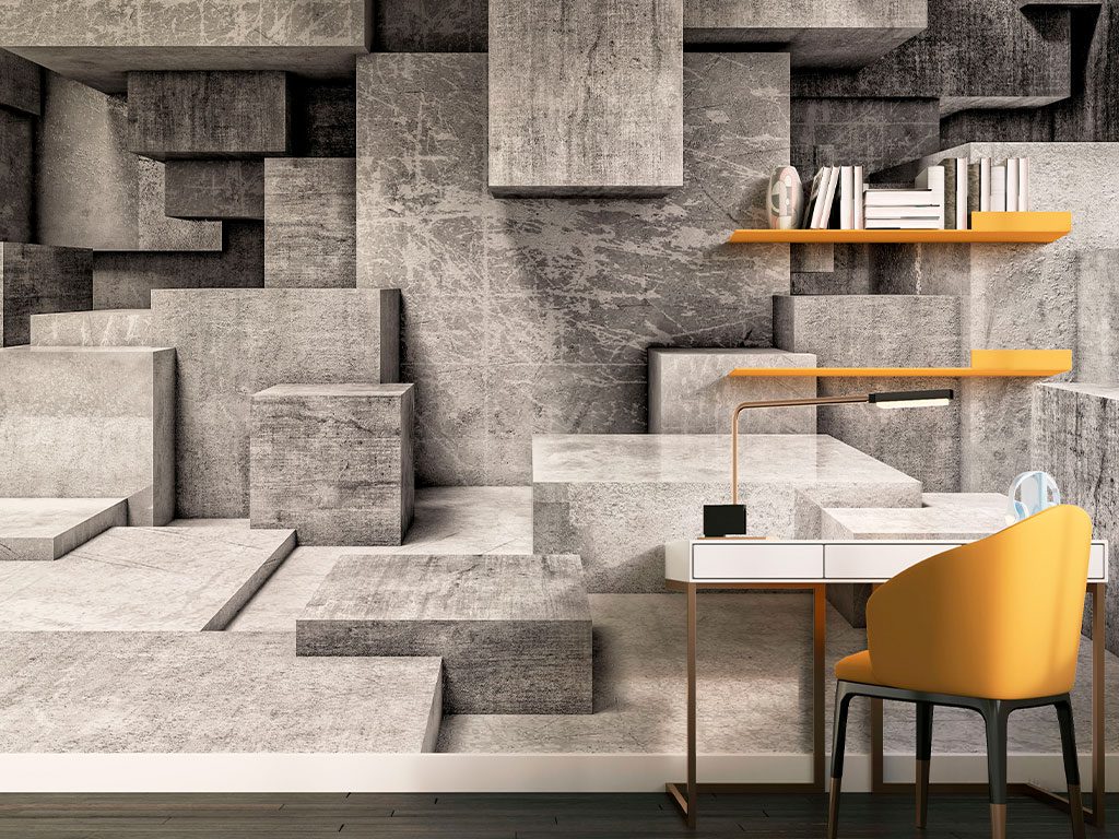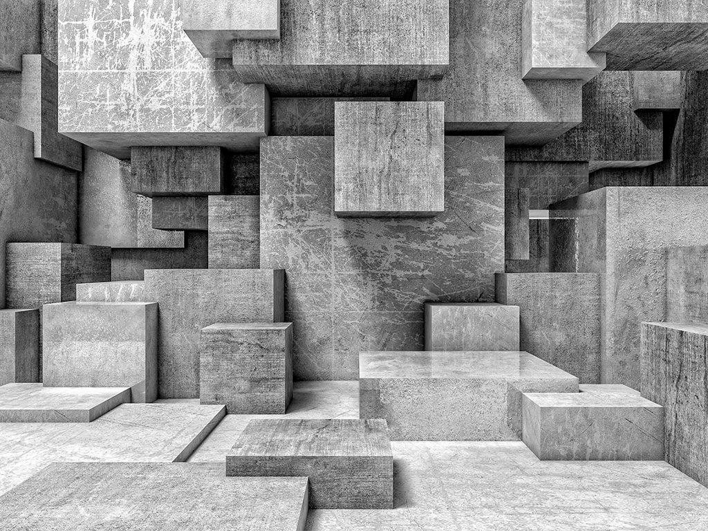 "Panoramic Cubes" presenta una composición tridimensional de cubos en diversos tamaños, dispuestos de manera que crean una estructura compleja y geométrica. Los cubos, en tonos de gris y con texturas que imitan el concreto y el mármol, parecen emerger y retroceder en el espacio, proporcionando una sensación de profundidad y dinamismo. La superficie de los cubos muestra variaciones sutiles de color y patrones, que añaden un nivel de detalle y realismo al diseño. Este mural es ideal para espacios modernos e industriales, aportando un toque contemporáneo y arquitectónico que puede transformar una pared en un punto focal impresionante.