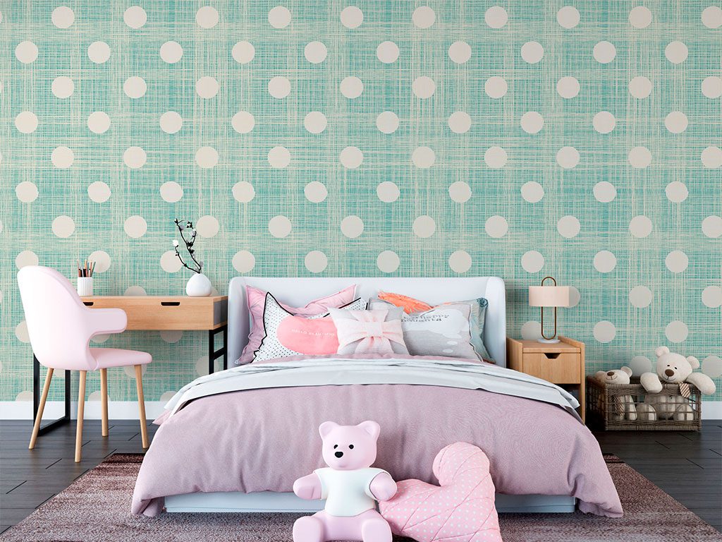 "Mint Polka Dots" presenta un diseño fresco y moderno con lunares blancos sobre un fondo de color menta la textura de fondo tiene un sutil patrón de líneas entrecruzadas que añade profundidad y un toque artesanal al diseño