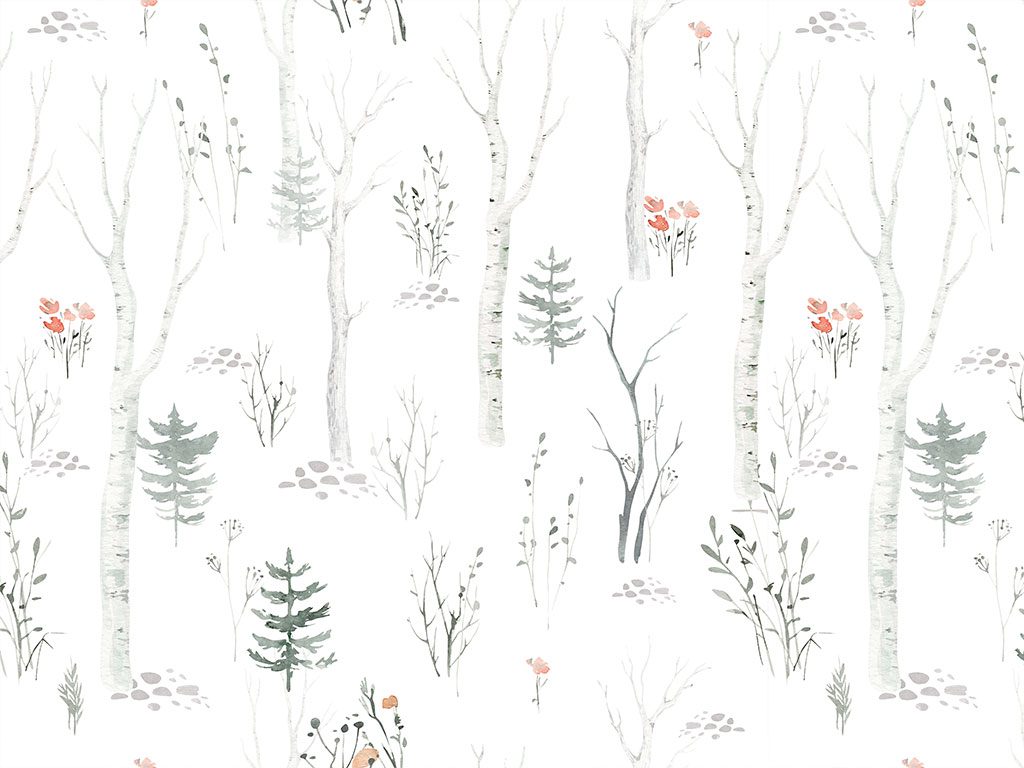 "Nice Forest" presenta un diseño minimalista y sereno con árboles delgados sin hojas, arbustos y flores en tonos suaves de blanco, gris, verde y rosa pastel. Su estilo elegante y tranquilo es ideal para crear un ambiente relajante en dormitorios, añadir un toque de naturaleza en salas de estar, aportar un tema acogedor en habitaciones infantiles, favorecer la concentración en estudios u oficinas en casa, y embellecer pasillos sin sobrecargar los espacios. Este papel mural es versátil y complementa diversos estilos de decoración, aportando siempre un toque de naturaleza y elegancia.