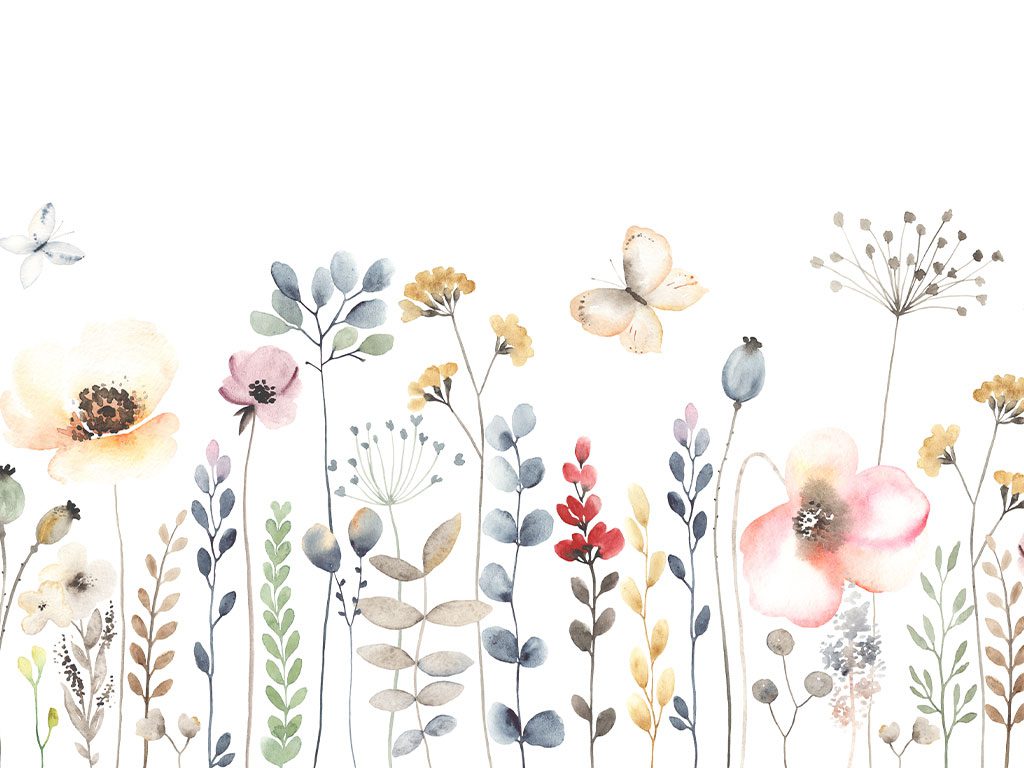 "Wild Blooms" presenta flores y mariposas en acuarela sobre un fondo blanco, creando un ambiente fresco y natural. Este papel mural es ideal para salas de estar, dormitorios, habitaciones infantiles, comedores, baños y oficinas en casa, añadiendo un toque de naturaleza y frescura. Es versátil y complementa diversos estilos de decoración, desde lo clásico hasta lo contemporáneo.